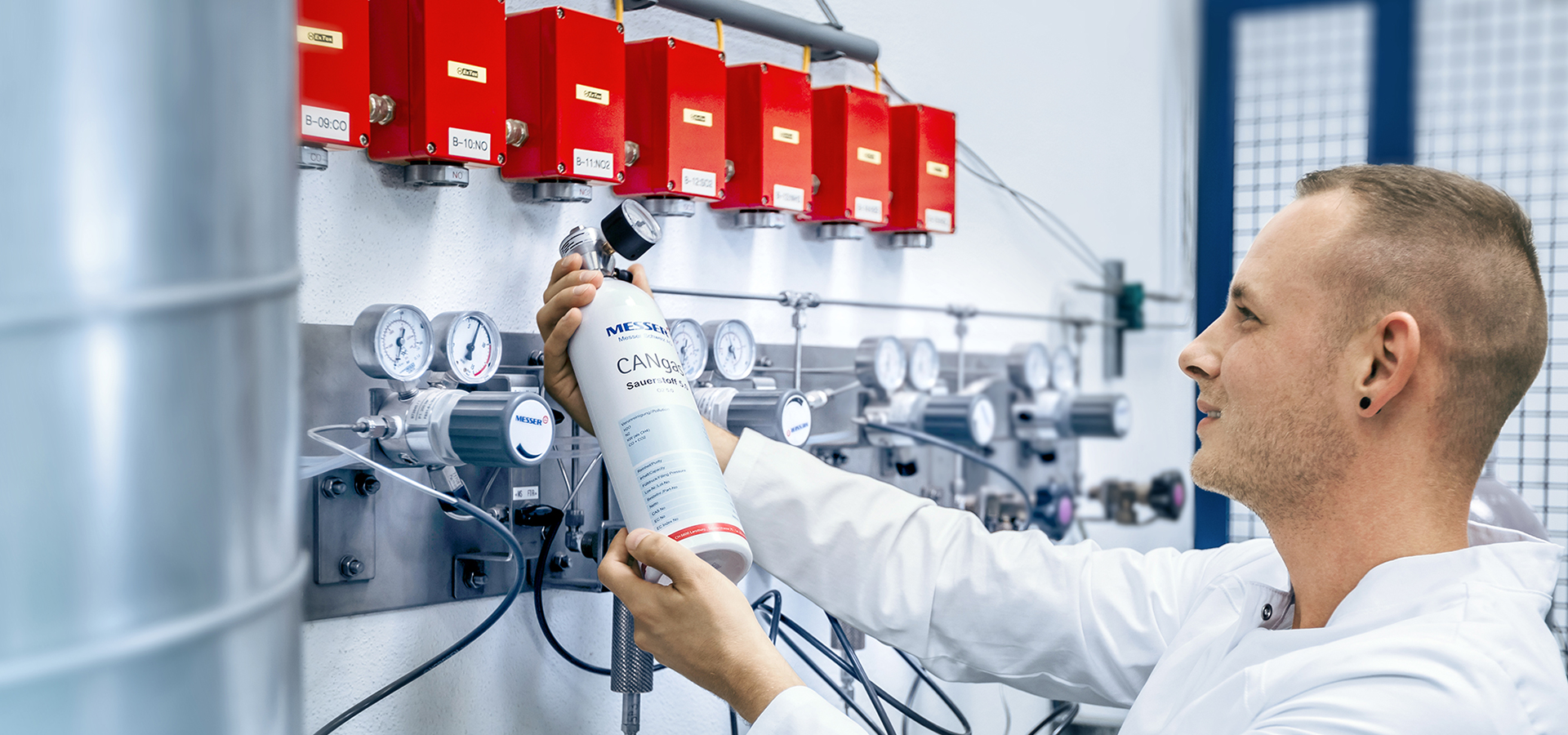 Neben den Betriebsgasen für die Analysegeräte bietet Messer auch Produkte für eine präzise Kalibrierung der gewünschten Komponenten an. Für diesen Zweck werden individuelle Gasgemische als Kalibriergase entsprechend der Spezifikation des Kunden gefertigt. Auf Wunsch bieten wir auch verschiedene individuelle Gasgemische mit einem Akkreditierungszertifikat gemäß EN ISO/IEC 17025 und EN ISO 17034 an.